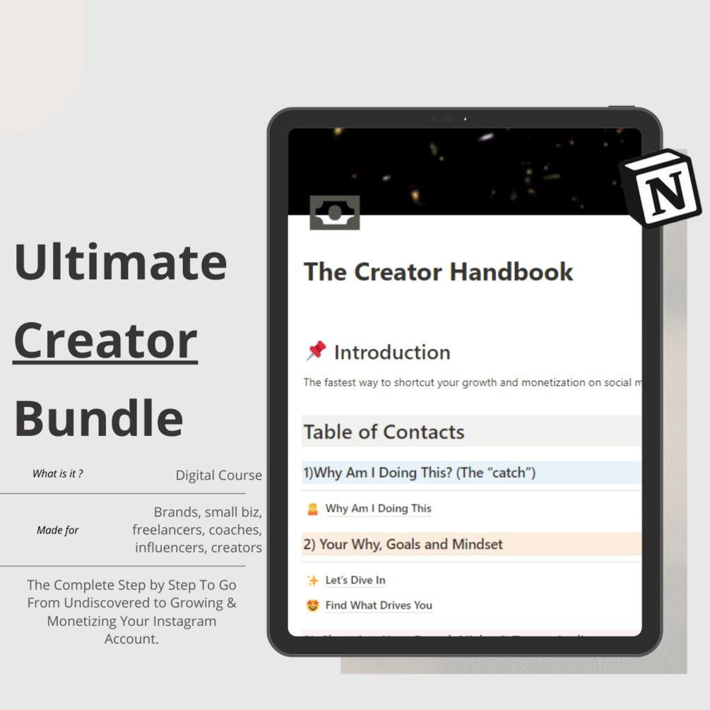 The Instagram Creator Handbook is your opportunity to have the step by step actions to build a audience, creating the right content to get more views, and have a sustainable income.